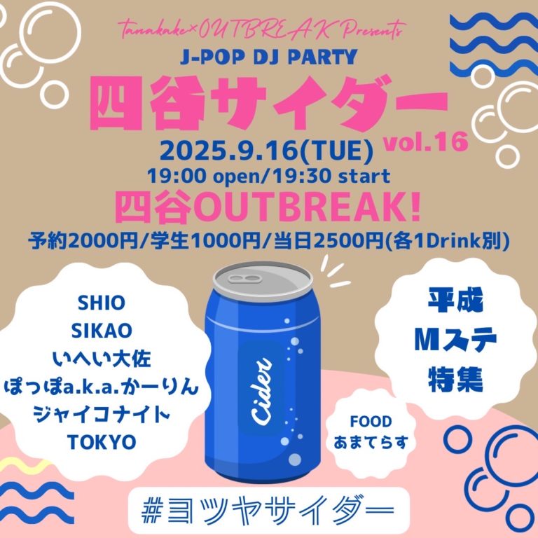 MEOTOユニット、tanakake主催のJ-POP DJ PARTY!