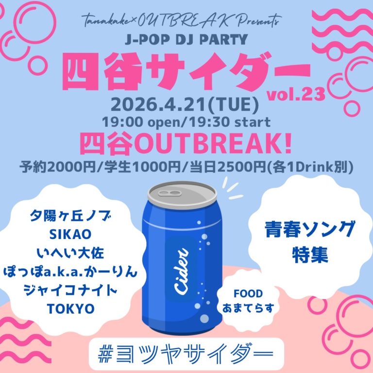 MEOTOユニット、tanakake主催のJ-POP DJ PARTY!